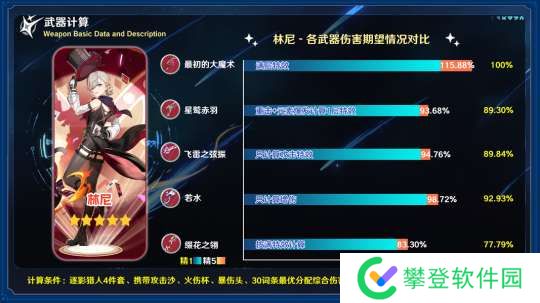 可以这样说,对于林尼来说,即使只能吃到星鹫赤羽的一层特效,它仍然表现出色。原因在于星鹫赤羽和最初的大魔术属于同一种类型的武器,它们的基础攻击力是608,暴击伤害加成为66.2%。