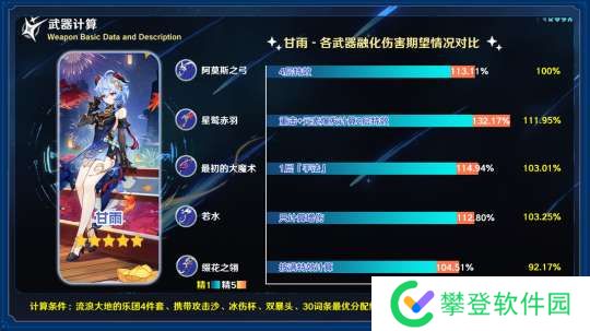岂止是不可小觑,简直是很有提升。不过这也难怪,阿莫斯作为常驻武器,年代过于久远,甘雨本身对双暴就有很高的需求,星鹫赤羽在满足66.2%暴击伤害的同时,还提供了48%的重击增伤及24%的大招伤害加成,有此表现也在情理之中。