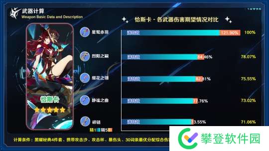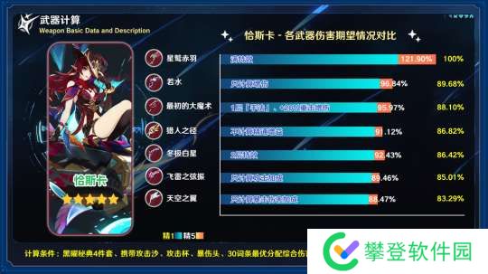 ▌「弓•星鹫赤羽」之于恰斯卡的伤害期望我们来看看星鹫赤羽在恰斯卡的表现如何:
