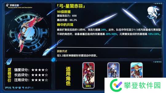 星鹫赤羽是一把有着很高强度和泛用性的输出武器,对于一众弓系角色来说,都有着相当不错的表现。