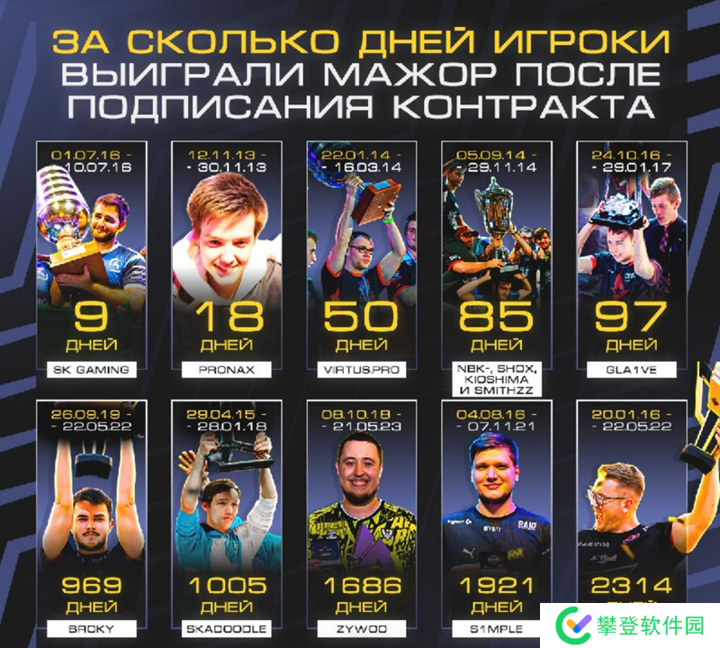 s1mple和ZywOo也各自用了超1500个日夜才捧起了Major奖杯。