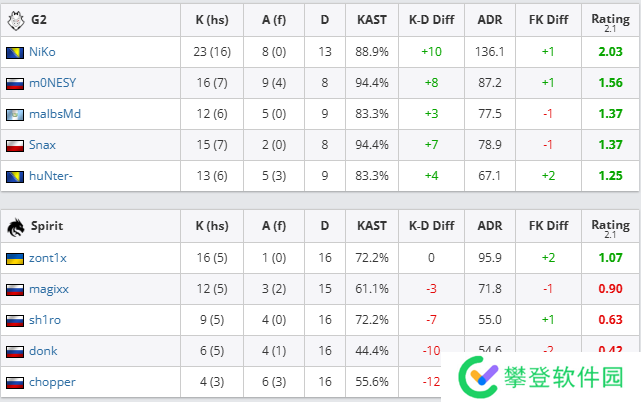 G2三图横扫,屈居亚军。本场比赛中,备受关注的俄罗斯天才步枪手donk在图二Anubis哑火,仅打出0.42 rating、54.6 ADR和6-16 K-D全队倒数第二数据。而这也是他职业生涯打出的线下赛第三差单图数据。