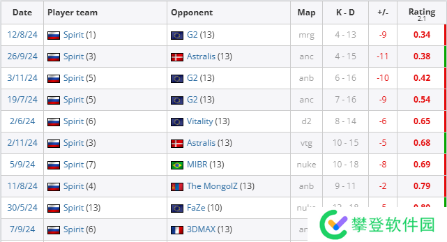 三图过后,Spirit 0-3不敌G2无缘冠军,而donk则是全队唯一正战绩选手(1.07 rating)