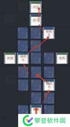 2、树林1:猎人-捕兽夹-前进右-捕兽夹-前进中-捕兽夹-前进中-捕兽夹-猎人-河边
