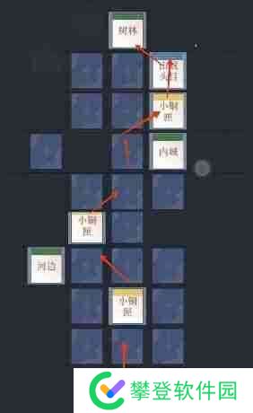 4、树林2:小铜匣(红)-工具箱(红)-流寇(红)-洞穴(红)-小铜匣(紫)-内城