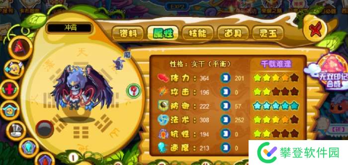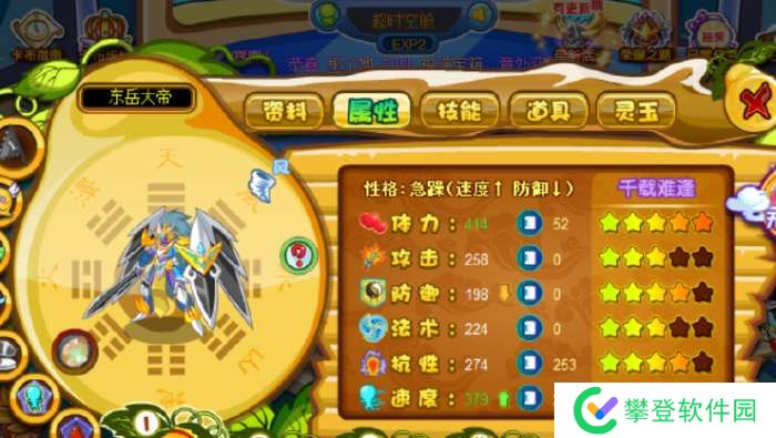 速度卡在301.抗性刷满,剩下给体力的东岳大帝(这里我为了打剑尊重刷了速度,不要在意)
