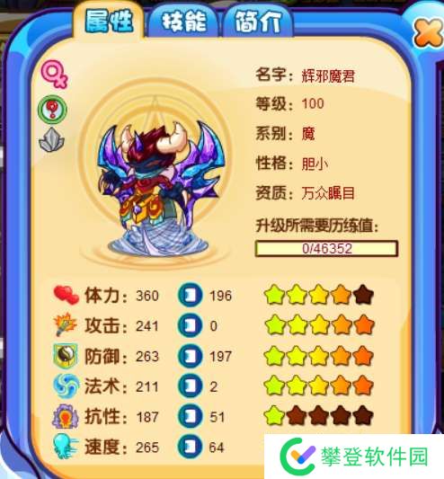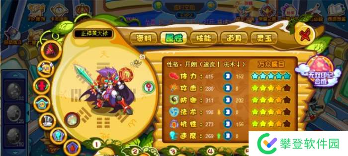 速度卡在265.体力400+,防御300+,剩下给抗性的正神黄天禄