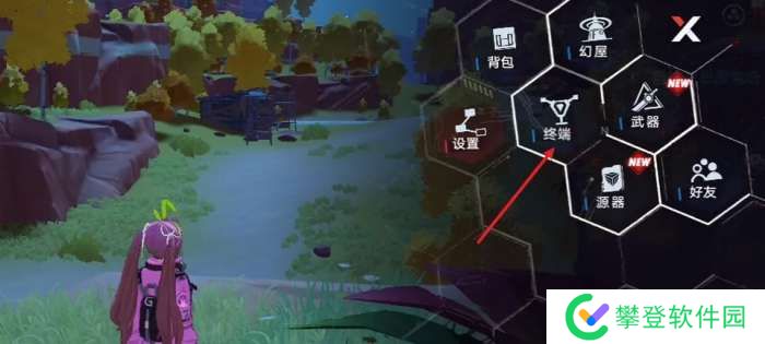 1、进入游戏点击右上角的功能选项,然后在功能选项中点击终端进入。