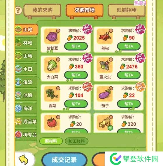 4、庄主可在美食任务、美食大赛、鲜百味等活动中对应界面,直接发起“快捷求购”~