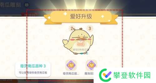 4、进入到南瓜雕刻页面,点击右下角的爱好升级。