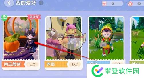 3、在我的爱好界面,可以选择多个类型的爱好,这里需要点击南瓜雕刻。
