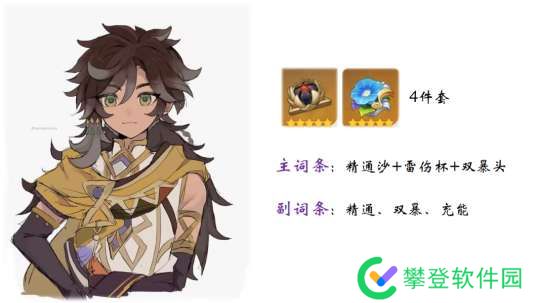 非常简单的选择,4饰金或4乐团,这里倒也有4如雷的可能性,但赛索斯对元素战技CD缩减的功能并不是特别有需求