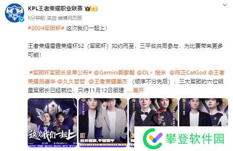 虎扑11月05日讯 KPL官宣军团杯:吕德华/Cat/久哲等任军团长,总奖金250万元