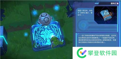 4、搬着箱子进入遗迹后,大家就可中间位置发现遗失的机器人,使用随身智能进行调查就可获得一份资料汇编。