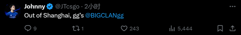JT:在上海Major出局了,GG BIG。
