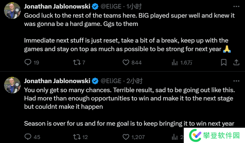 EliGE:机不可失,失不再来。糟糕的成绩,很遗憾以这样的方式出局。我们有很多机会获胜晋级,但却没能做到。