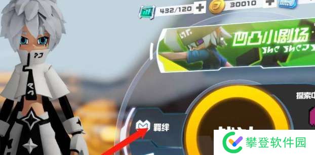 1、进入游戏后在首页面,点击左侧的羁绊按钮