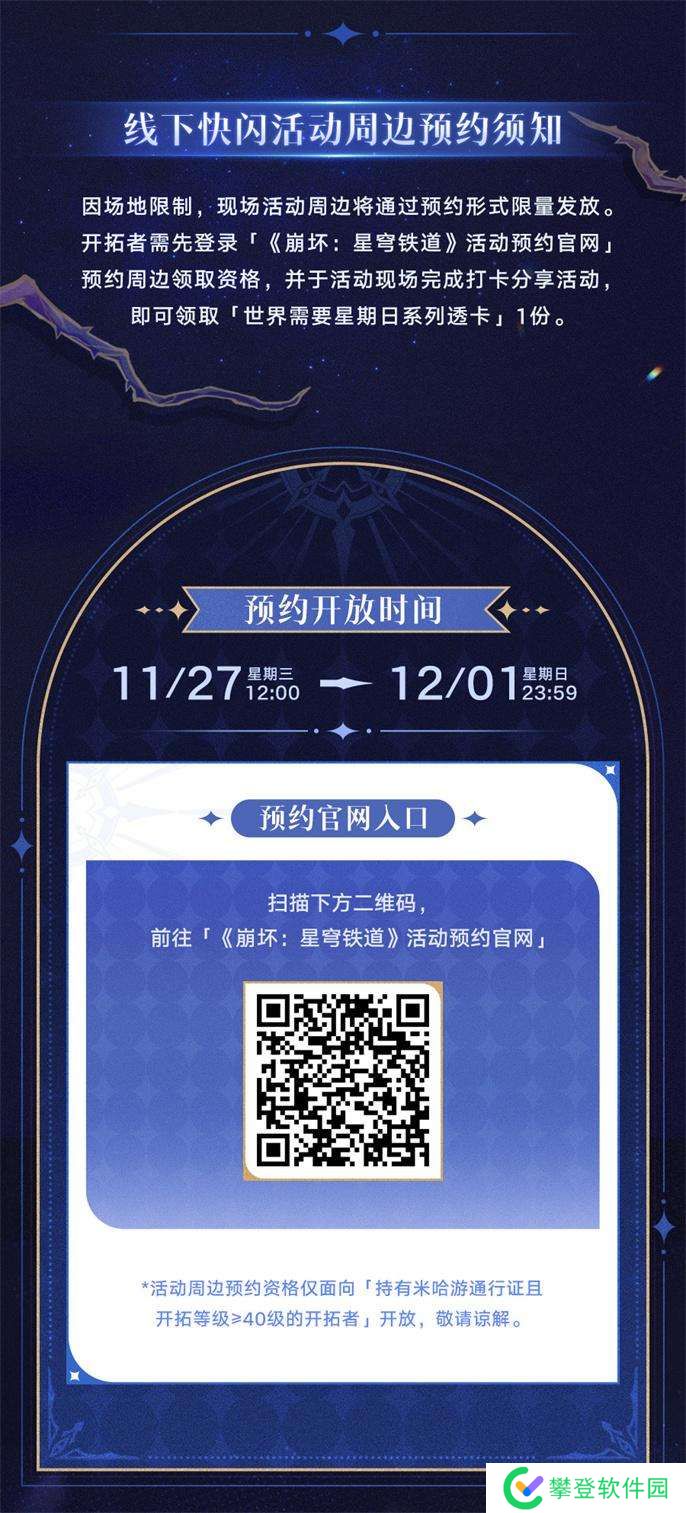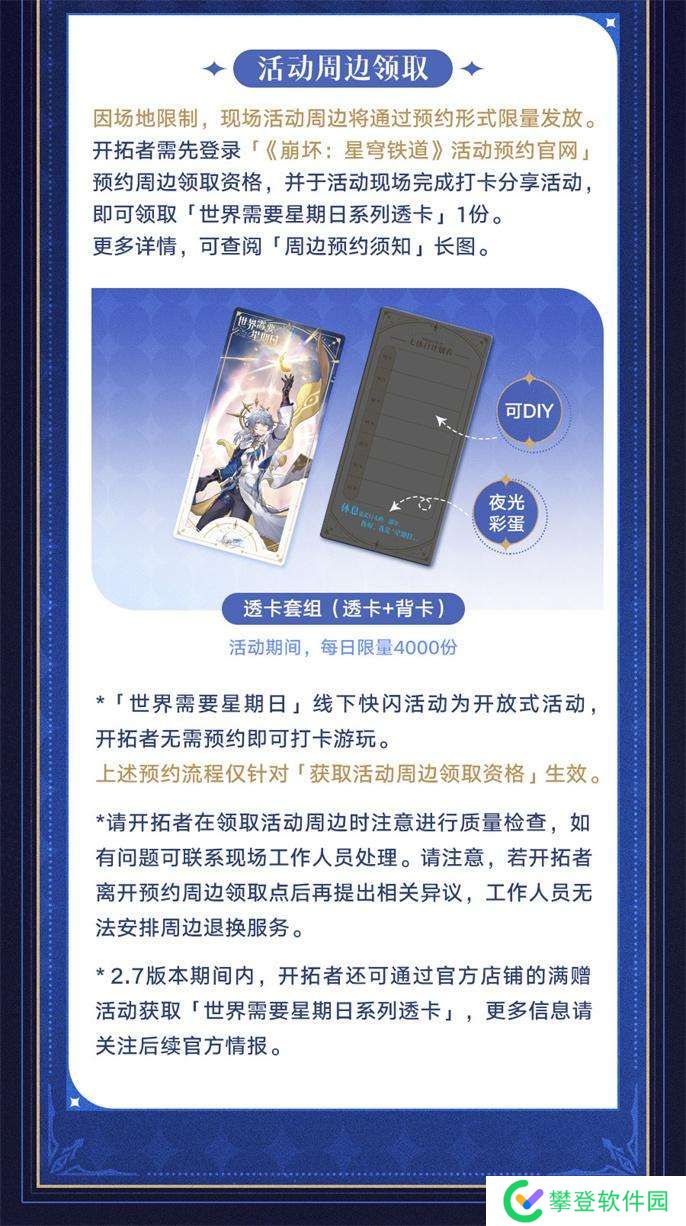 现场活动周边将通过预约形式限量发放,具体预约情报开拓者可查看「《崩坏:星穹铁道》活动预约官网」了解【官网地址:https://mhyurl.cn/eIRlFBAL】