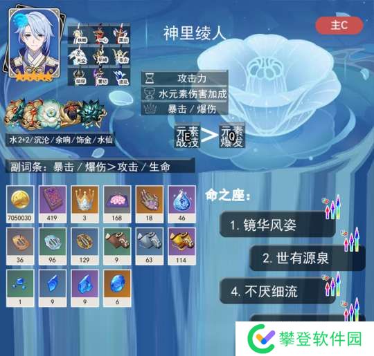 如果不戴「海染套」,就绝对无法C的角色。因为自己不能暴击的水伤想打出伤害简直可笑,这是心海设计上最失败的地方。