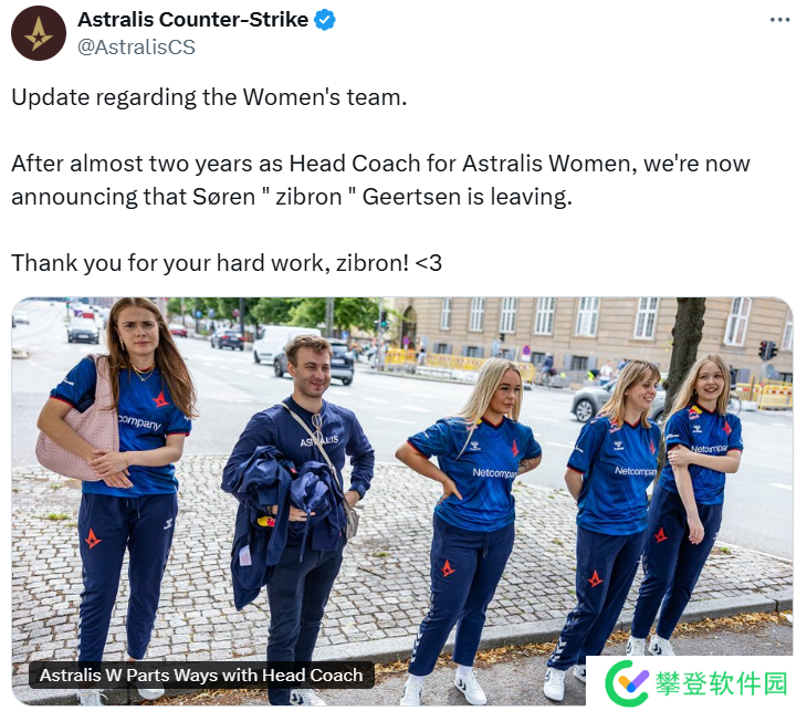 Astralis W主教练近两年之后,现官宣与Astralis女队分道扬镳。