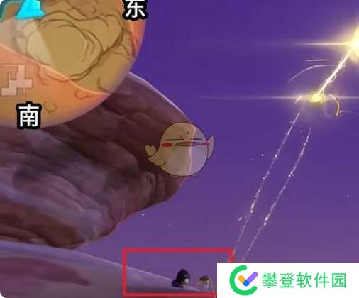2、开始挑战后,往西北方向飞,去前放的石头上面。