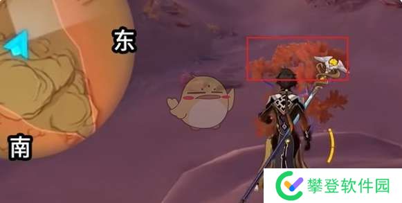 6、打完招呼后,转向西南方向,利用红色方框处的东西往上走。