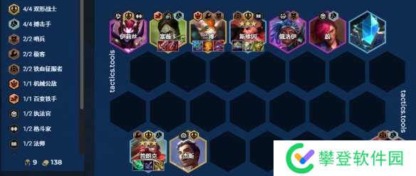 但这套阵容需要的4/5费棋子比较多,不建议在多赌狗对局中考虑,C位2星慢,输出强度会跟不上。