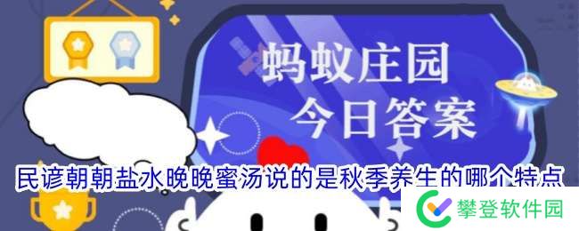 题目:民谚“朝朝盐水,晚晚蜜汤”说的是秋季养生的哪个特点?