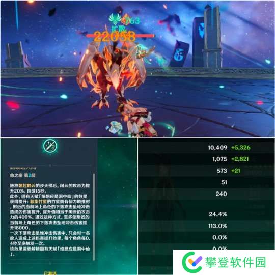 3900面板的二命闲云,计算增加15600点伤害,实际烟绯下落攻击为22058,最终增伤能力303.47%。