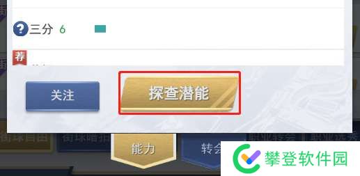 另外一个方法,是找到大属性满意的球员,打开球员信息查看能力页面,通过探查潜能来鉴别球员品阶,一目了然,但是需要消耗道具或钻石。