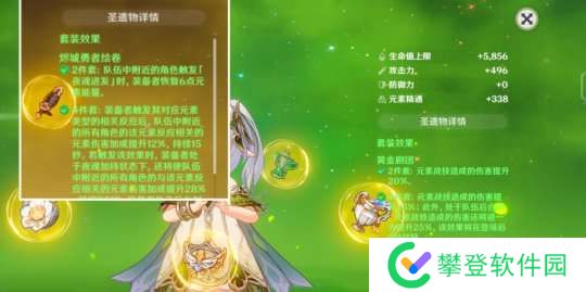 我们会发现:只要队伍里有任意一个角色穿戴就能触发目标的草抗减30%,并非需要穿戴者才能收益。