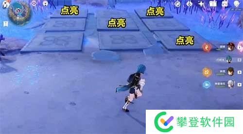 3、回到第一个谜题位置,踩亮九宫格中没被点亮的地板即可完成谜题。
