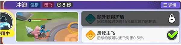 冲浪:二级技能:在冲浪过程中进行位移,能击飞目标8秒钟。