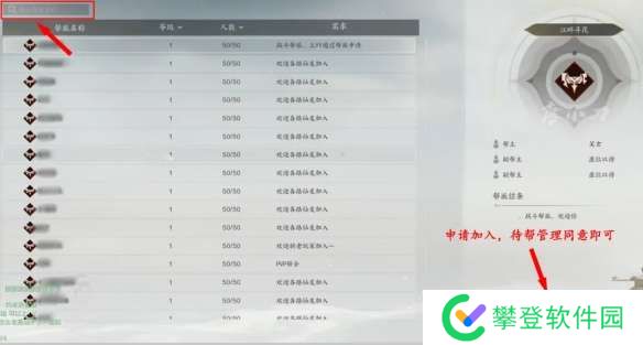3、打开帮派界面,选择一个满意的帮派,点击申请入帮即可。