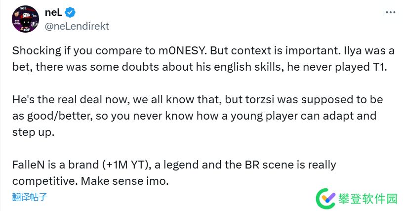 G2签下m0NESY的60万美元进行对比。对此,著名媒体人neL进行了讨论。