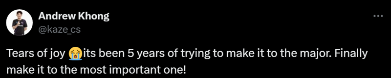 kaze:喜极而泣!5年来我一直在努力进入Major。终于在最重要的一次做到了!