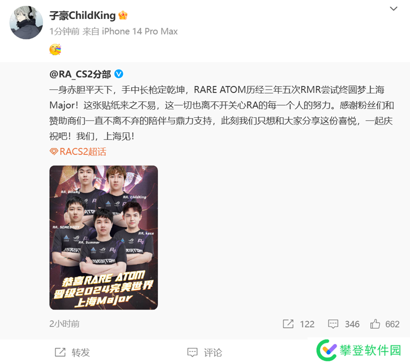 在成功晋级上海Major之后,