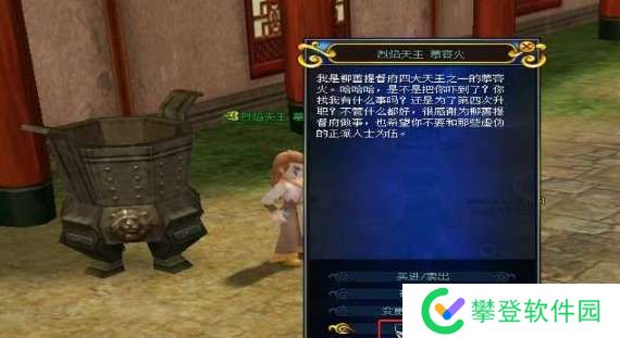 2、购买成功后找到NPC慕容火,与其对话选择门派服组合
