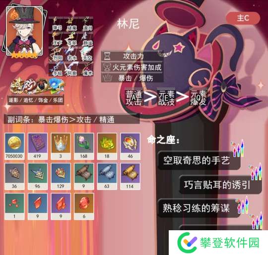 林尼是一个直接输出的角色,从天赋到命座都是如此。没有命座的加持,与其他瞄准射击的角色相比,林尼最不足的地方在于范围太小了。如果距离太远,她的战技伤害就无法充分发挥,这与其他瞄准射击角色相比是劣势之一。其他瞄准射击角色射中后有很大的扩散攻击或者分裂箭,但林尼需要等到重击留下的猫猫一起攻击。因此,林尼对于强度的要求非常高。不过,与其他角色相比,林尼的双爆非常容易堆叠,因此她是一个提升伤害不错的角色。