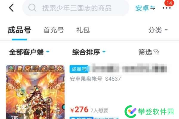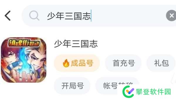 进入平台之后可以在搜索页面输入少年三国志,点击搜索即可查看售卖信息。