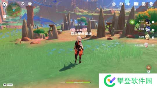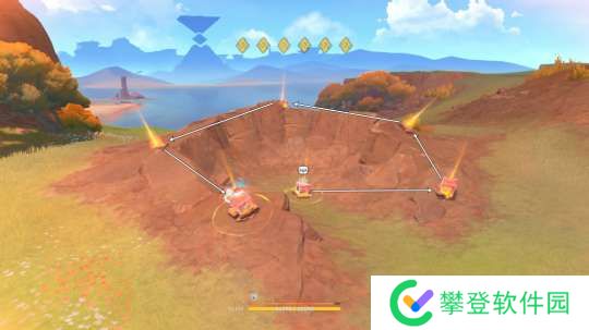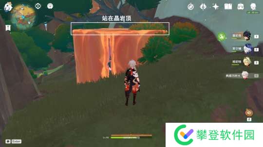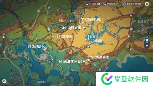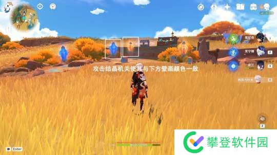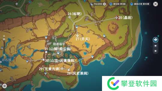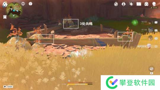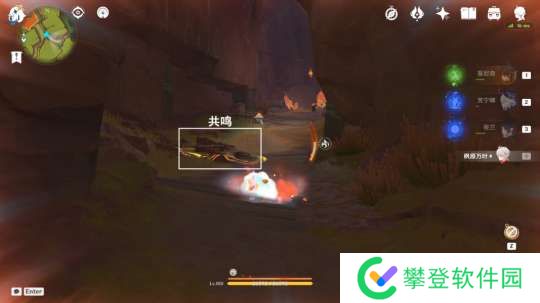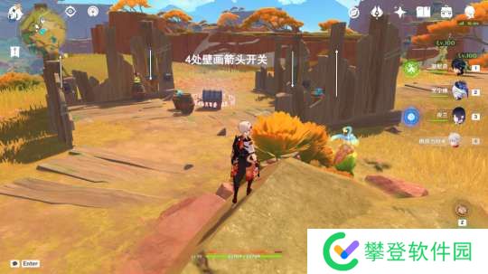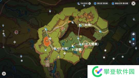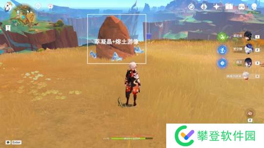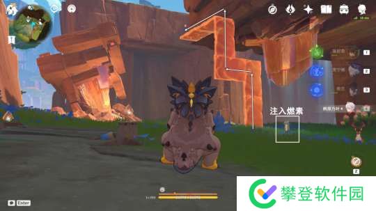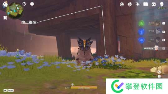 微解谜宝箱9:按图中指引路线,攻击沿路的共鸣位置,进入熔土裂隙,传送至山顶
