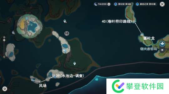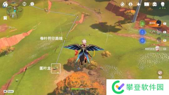 微解谜宝箱40:魂附匿叶龙,按图中指引卷叶符印路线飞行并攻击标靶