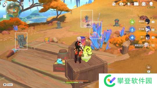 微解谜宝箱30:前往山顶木平台边缘,魂附匿叶龙,利用卷叶符印,拾取空中的火元素微粒