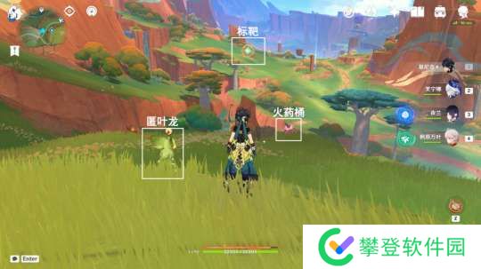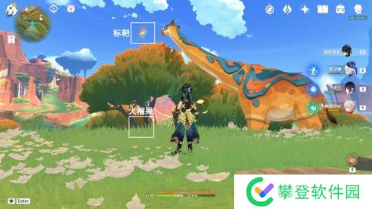 微解谜宝箱26:魂附匿叶龙,拾取火榴果,攻击岩石顶的标靶