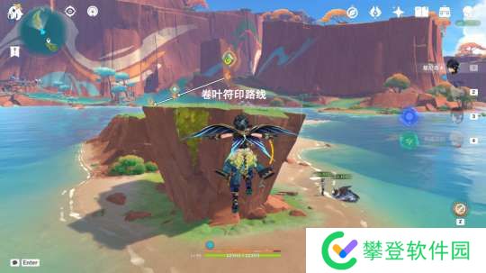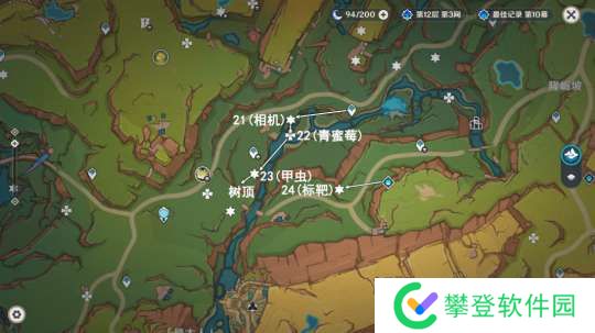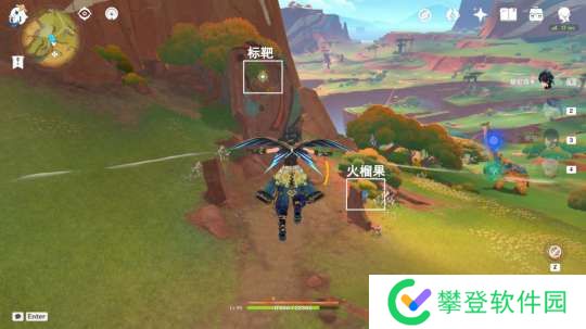 微解谜宝箱14:魂附匿叶龙,拾取火榴果,瞄准树顶标靶,利用卷叶符印,前往树顶,拾取4个火之微粒