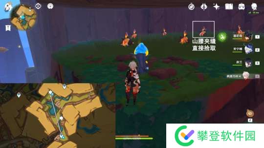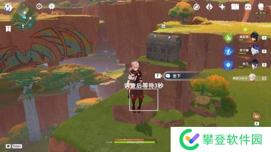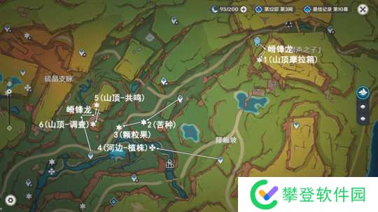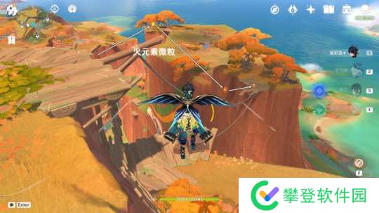 微解谜宝箱1:魂附嵴锋龙,前往山顶,拾取摩拉箱,开启风场,利用加速圈,拾取空中的火之微粒