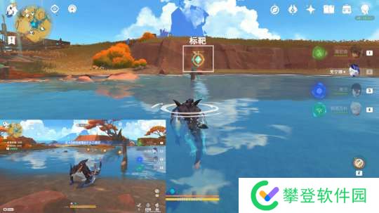 微解谜宝箱36:魂附匿叶龙,前往山腰木平台,切换弓箭角色,射击3个风史莱姆