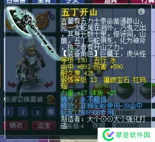 3、项链和武器也应该是130级不磨变身装备,并带有特技如气归术和放下屠刀,这些特技可以在战斗中提供必要的恢复和防御手段。