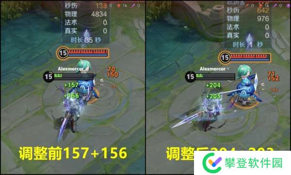 调整前二技能普攻157+156点回血,调整后二技能普攻204+203点回血,回血量比以前提升了30%左右。