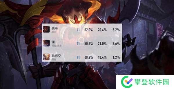 排位赛上,典韦依旧是综合成绩第一的英雄,虽然他的出场率略逊于澜,但典韦的胜率远比澜高,达到了52%。如果你是正儿八经追求上星的玩家,典韦以及是你第一选择。相比其他打野英雄,典韦能扛能打,回血能力强大,伤害输出不低,单挑无敌,一打二不虚,操作也简单,上手没有门槛,人人都可以用典韦上分。